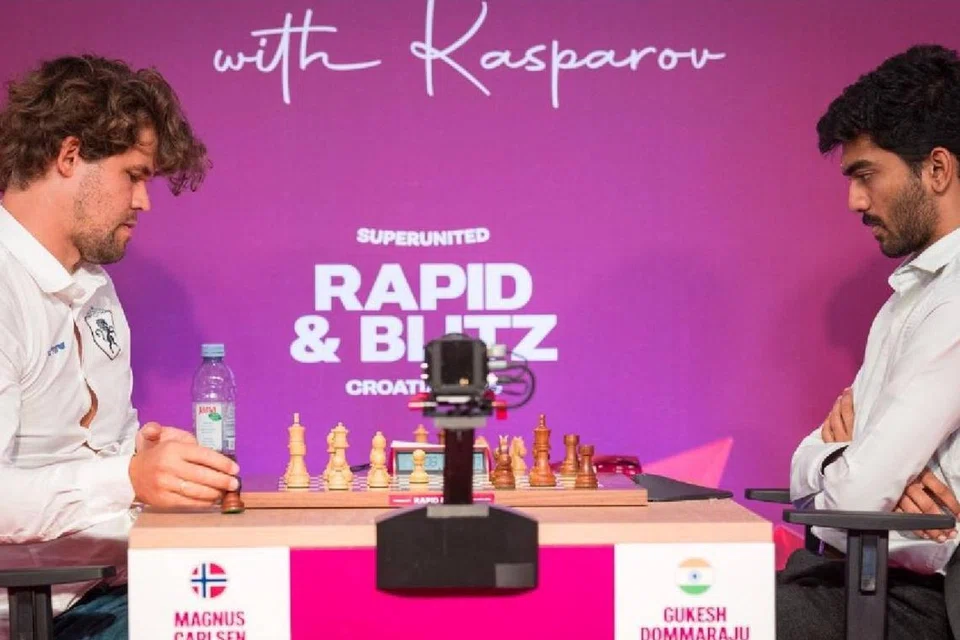 ஸாக்ரெப்: இந்திய இளம் கிராண்ட் மாஸ்டரும் உலக வெற்றியாளருமான டி.குகேஷ் குரோவேஷியாவில் நடைபெற்று வரும் கிராண்ட் சதுரங்க டூர் சூப்பர் யுனைடெட் ரேபிட் 2025 போட்டியில் கார்ல்சனை வீழ்த்தி அசத்தலான வெற்றியைப் பெற்றார்.