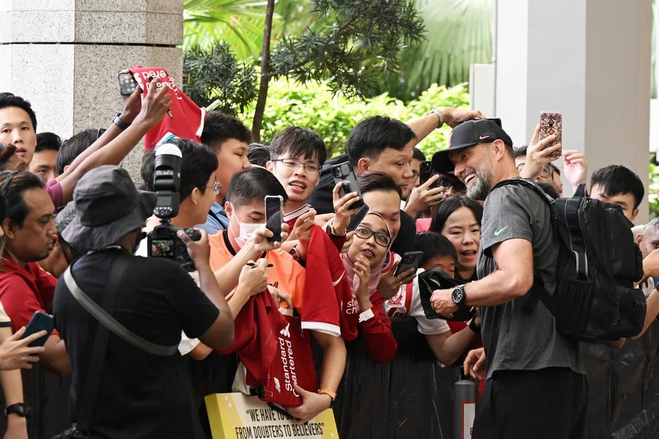 ரிட்ஸ் கார்ல்ட்டன் ஹோட்டலுக்கு நேற்றுப் பிற்பகல் 1.30 மணியளவில் வந்து சேர்ந்த லிவர்பூல் குழுவினரைக் காண கிட்டத்தட்ட 150 ரசிகர்கள் திரண்டிருந்தனர். லிவர்பூல் செந்நிறச் சீருடையுடன் தங்களுக்குப் பிடித்தமான ஆட்டக்காரர்களின் படங்களையும் கைகளில் ஏந்தியபடி அவர்கள் பேரார்வத்துடன் காத்திருந்தனர்.
