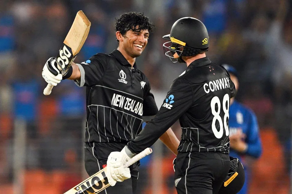 கான்வே 152 ஓட்டங்களைக் குவித்தார், இந்திய வம்சாவளி வீரரான ரவீந்திரா 123 ஓட்டங்களை எடுத்தார். 23 வயதான ரவீந்திரா, ஆண்கள் ஒருநாள் கிரிக்கெட் உலகக் கிண்ணப் போட்டியில் சதமடித்த ஆக இளம் நியூசிலாந்து வீரரும் ஆவார்.