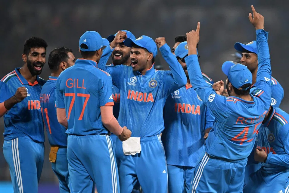 ரேசி வேன் டர் டுசனை வீழ்த்திய பிறகு கொண்டாடிய இந்திய வீரர்கள். - படம்: ஏஃப்பி