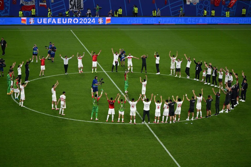 வெற்றியைக் கொண்டாடும் துருக்கி வீரர்கள். - படம்: ஏஎஃப்பி
