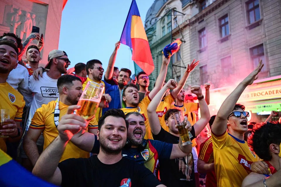 ருமேனியாவின் வெற்றியை தலைநகர் புகாரெஸ்ட்டில் கொண்டாடும் மக்கள். - படம்: ஏஎஃப்பி