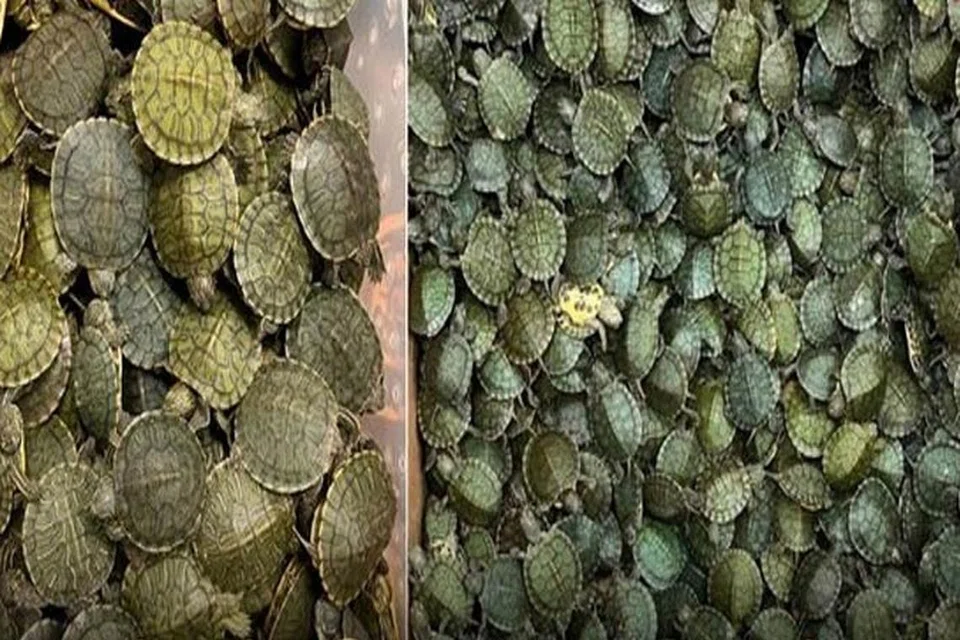 அப்போது சென்னையைச் சேர்ந்த பயணிகள் இருவரிடம் நடத்திய சோதனையில், அவர்கள் கொண்டு வந்த பெரிய அட்டைப் பெட்டியில் இருந்த 5,400 சிவப்புக் காது அலங்கார நீர் ஆமைகளைப் பறிமுதல் செய்தனர். இதன் அனைத்துலக மதிப்பு சுமார் ரூ.75 லட்சம் என்று கூறப்படுகிறது.