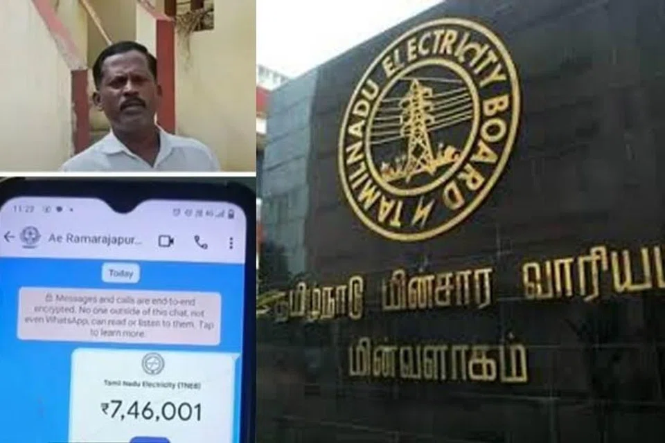 இவ்வீட்டுக்கு இரு மாதத்துக்கு ஒருமுறை ரூ.120 முதல் ரூ.150 வரை மின்கட்டணம் செலுத்தி வந்த நிலையில், கடந்த 28ஆம் தேதி முருகேசனின் கைப்பேசிக்கு பிப்ரவரி 17ஆம் தேதிக்குள் ரூ.746,001 மின்கட்டணத்தைச் செலுத்தும்படி குறுஞ்செய்தி வந்ததால் முருகேசன் அதிர்ச்சி அடைந்தார்.