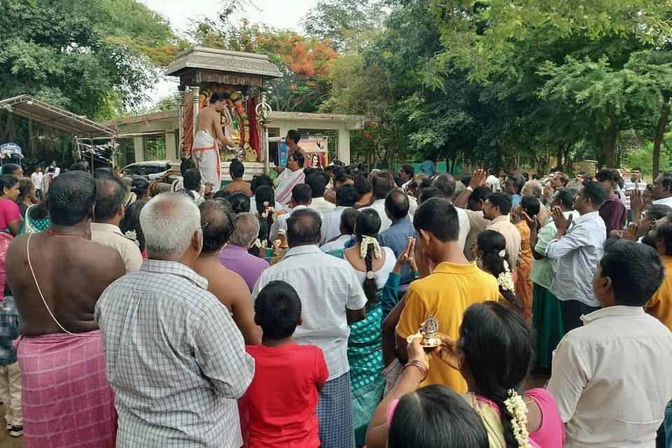 பெண்கள் ஒருவருக்கு ஒருவர் கழுத்தில் புதிய மஞ்சள் கயிறு அணிவித்துக்கொண்டனர்.