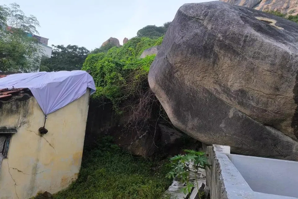 பாறை உருண்டு விழுந்தபோது பயங்கரமான சத்தம் கேட்டதால் வெங்கடாசலம் குடும்பமும் அந்தப் பகுதியில் வசித்து வந்த பொதுமக்களும் வீடுகளை விட்டு வெளியேறி உயிர் தப்பினர்.