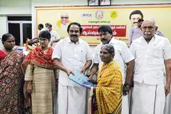 இலவச வேட்டி, சேலை வழங்கும் திட்டத்தின்கீழ் 1.77 கோடி வேட்டி, சேலைகள் நியாய விலைக் கடைகள் மூலம் பொங்கல் தொகுப்புடன் வழங்கப்படும்.