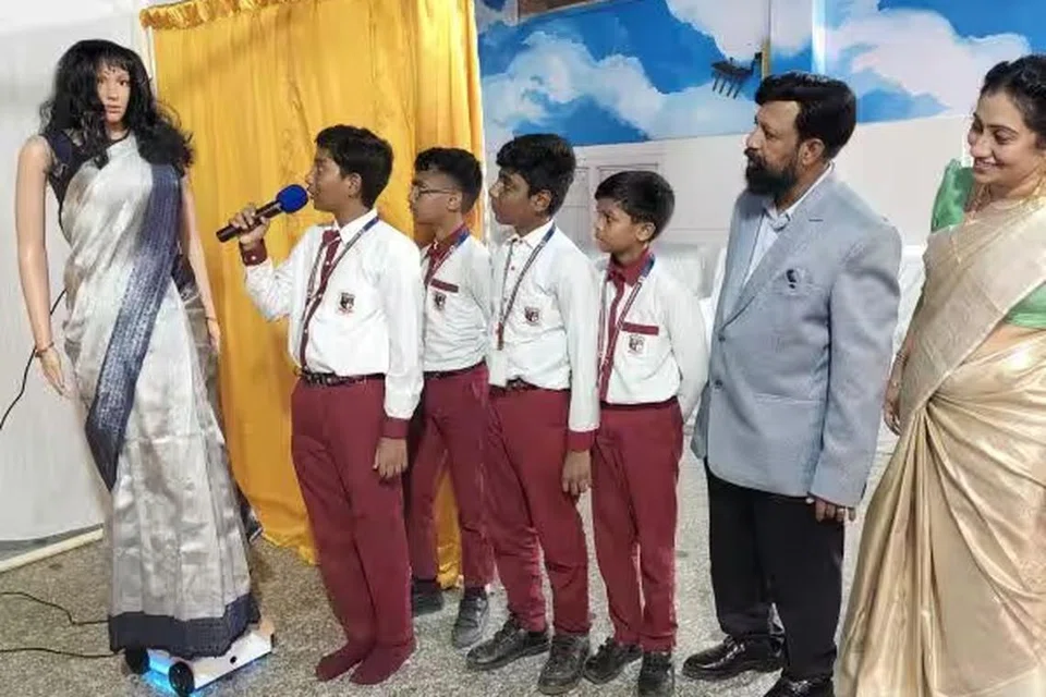 தமிழ்நாட்டில் பள்ளி மாணவர்களுக்கு 50 மொழிகளில் பேசக்கூடிய செயற்கை நுண்ணறிவு தொழில்நுட்ப இயந்திர ஆசிரியை அறிமுகப்படுத்தப்பட்டது இதுவே முதல் முறை எனப் பள்ளி நிர்வாகம் தெரிவித்துள்ளது.