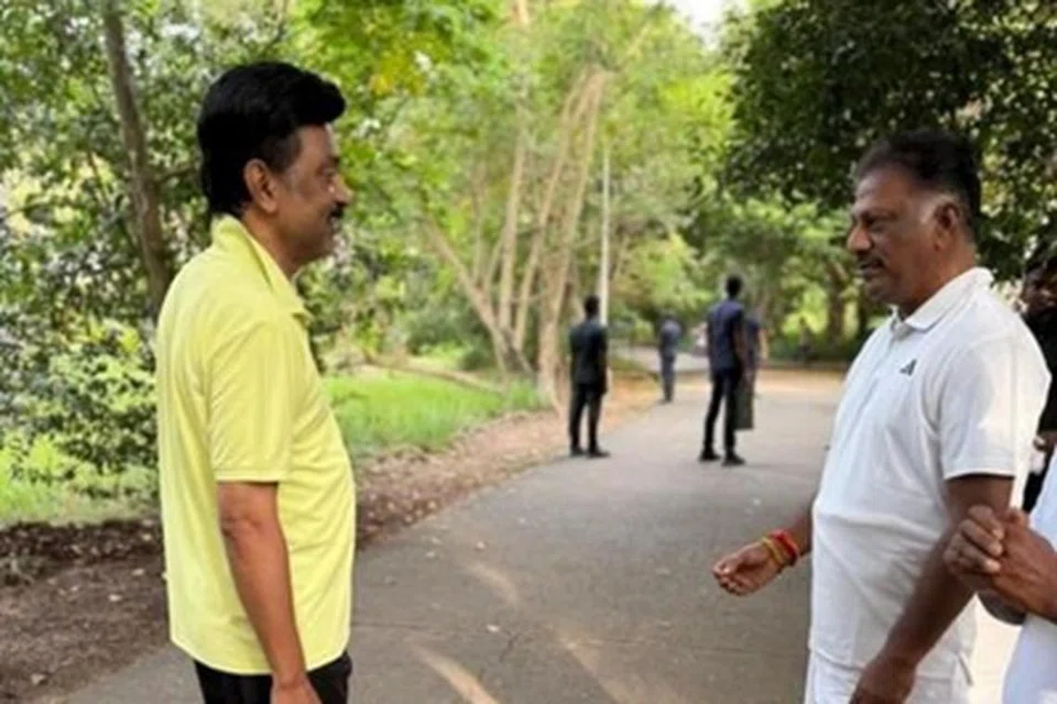 சென்னை அடையாறு பகுதியில் உள்ள பூங்காவில் திரு ஸ்டாலின் நடைப்பயிற்சி மேற்கொண்டபோது, ஓ.பன்னீர்செல்வமும் அங்கு நடைப்பயிற்சியில் ஈடுபட்டிருந்தார்.