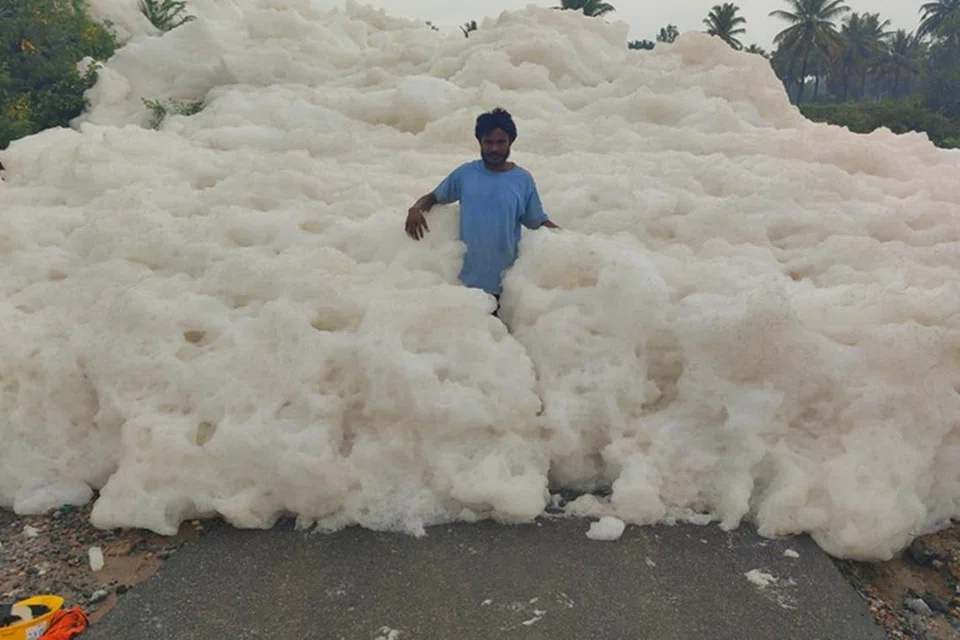 “மேலும் இதுபோன்று தண்ணீரும் ரசாயனக் கழிவும் கலந்த வெள்ளை நுரை பாலத்தை மறைப்பதால் மக்கள் சுமார் 10 கி.மீட்டர் தூரம் சுற்றிச் செல்லவேண்டிய நிலை ஏற்பட்டுள்ளது.
