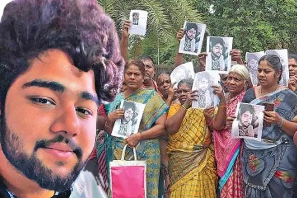 ரஷ்யச் சிறையில் சிக்கி தவிக்கும் கடலூர் இளையர் கிஷோரை மீட்டுத் தரக்கோரி மாவட்ட ஆட்சியர் அலுவலகம் முன்பு ஆர்ப்பாட்டத்தில் ஈடுபட்ட கிஷோரின் உறவினர்கள். - படம்: ஊடகம்