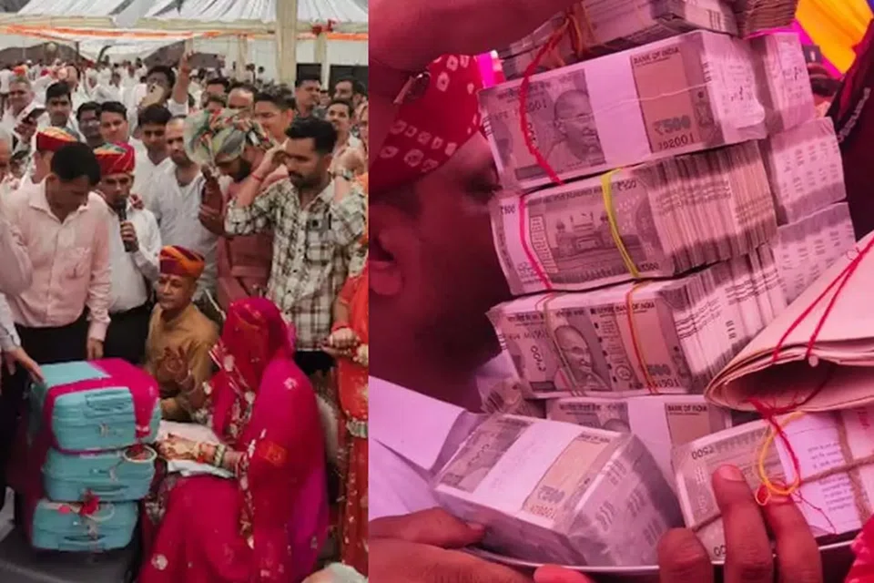 ராஜஸ்தானில் நடைபெற்ற திருமண விழாவில் மணமகள் குடும்பத்தினரால் மணமகனுக்கு பெட்டிப் பெட்டியாக வரதட்சணை வழங்கப்பட்டது.