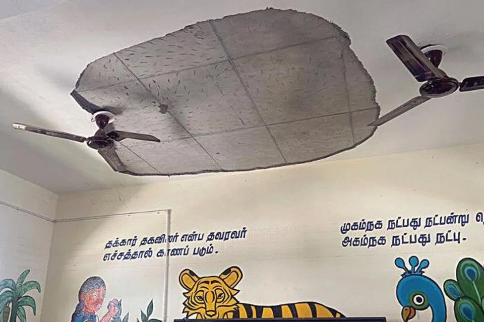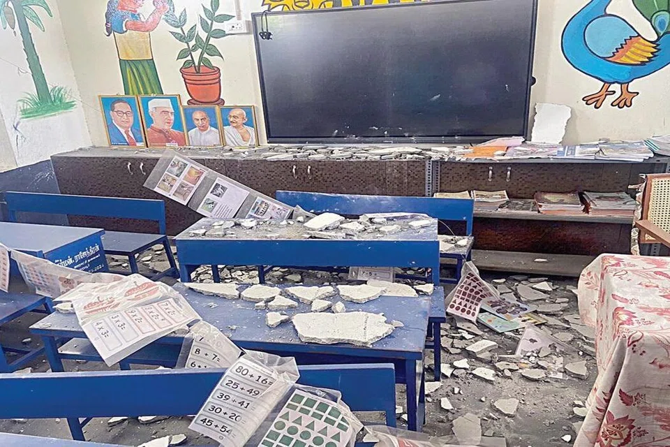 இந்நிலையில், வழக்கம்போல் பள்ளிக்கு வந்த மாணவ, மாணவிகள் தங்களது வகுப்பறையின் மேற்கூரை பெயர்ந்து வகுப்பறை முழுவதும் விழுந்து கிடந்ததைப் பார்த்து அதிர்ச்சியடைந்தனர்.