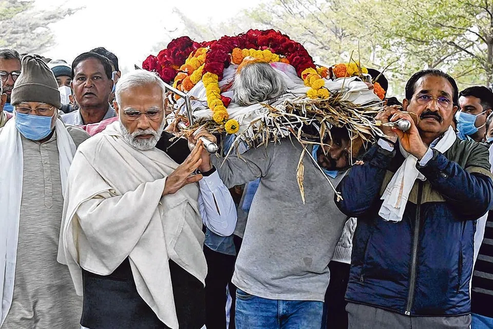 அவரது தாயாரின் உடல் நேற்று தகனம் செய்யப்பட்டது. இந்தச் சடங்கில் பிரதமர் மோடி, அவரது சகோதரர்கள், உறவினர்கள் உள்ளிட்டோர் பங்கேற்றனர்.