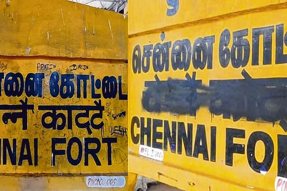 சென்னை: கோட்டை ரயில் நிலையத்தின் பெயர்ப் பலகையில் இந்தி எழுத்துகள் அழிக்கப்பட்டது குறித்து சென்னையில் உள்ள ரயில்வே பாதுகாப்புப் படையினர் விசாரணை மேற் கொண்டுள்ளனர்.