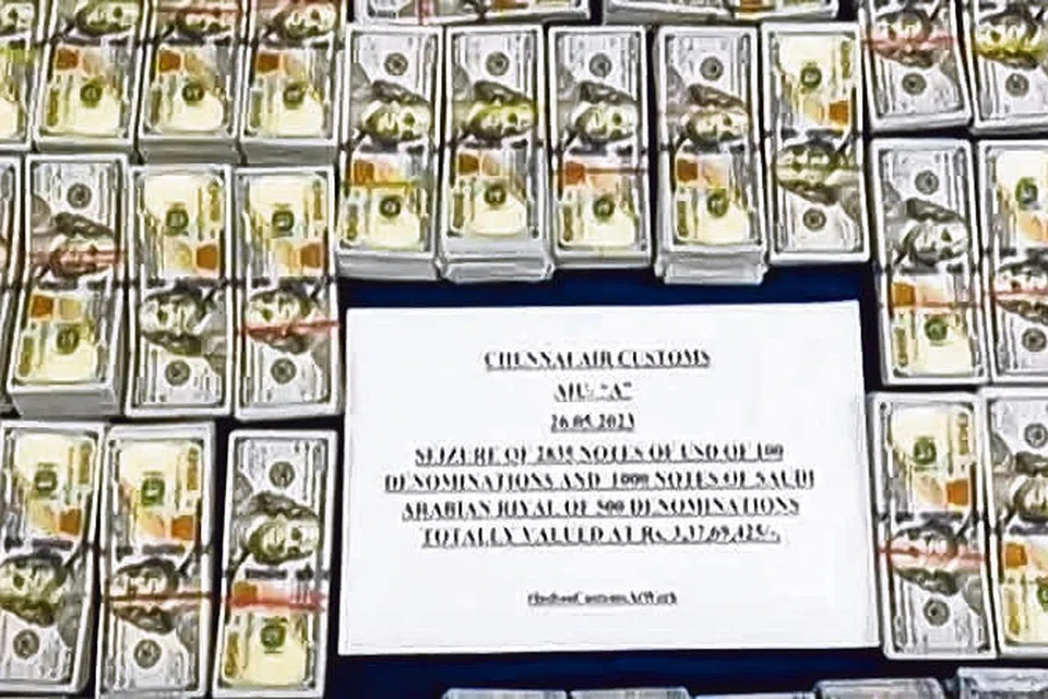 அவரிடம் இருந்து அமெரிக்க டாலர், சவுதி அரேபியா ரியால் ஆகியவை பறிமுதல் செய்யப்பட்டதாக அதிகாரிகள் தெரிவித்தனர்.
