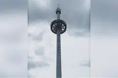 அந்த உயரத்தில் அந்த ஆடவரையும் பிள்ளையையும் பிடித்து பத்திரமாகக் கீழே கொண்டு வந்து சேர்த்தனர்.