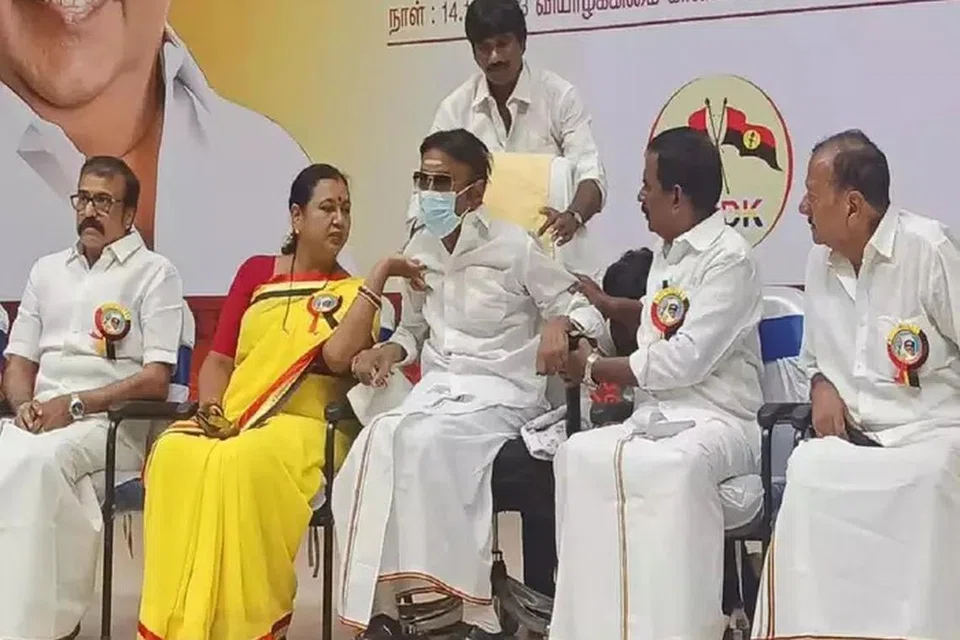 திருவேற்காடு ஜிபிஎன் பேலஸ் திருமண மண்டபத்துக்குள் சக்கர நாற்காலியில் விஜயகாந்த்தை அழைத்து வந்தபோது, கட்சி நிர்வாகிகளும் அவரது தொண்டர்களும் கூக்குரலிட்டு தங்களது மகிழ்ச்சியை வெளிப்படுத்தினர்.