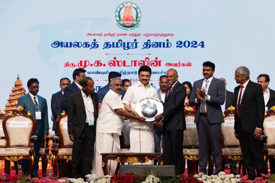 “இவ்வாண்டு சிங்கப்பூரை சிறப்பிக்கும் வகையில் தலைமை விருந்தினராகக் கலந்துகொள்ள அழைப்பு விடுத்த தமிழ்நாட்டின் முதல்வர், கலைஞரின் புதல்வர் மாண்புமிகு மு.க.ஸ்டாலினுக்கு நன்றி தெரிவிக்கிறேன்,” என அழகு தமிழில் தன் சிறப்புரையைத் தொடங்கினார் திரு சண்முகம்.