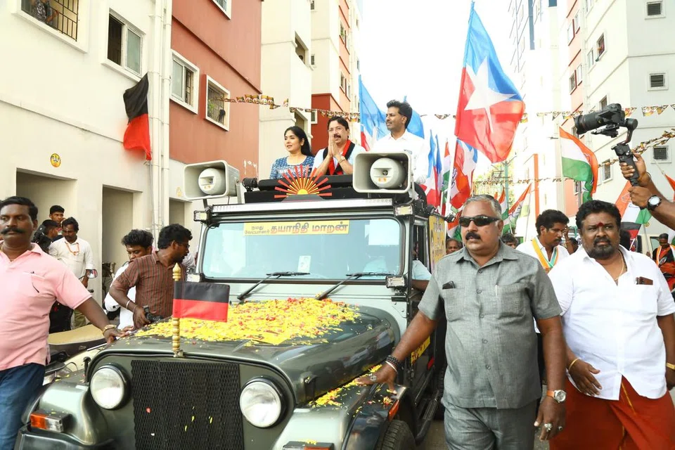 செவ்வாய்க் கிழமை மத்திய சென்னை இண்டியா-திமுக கூட்டணி வேட்பாளர் தயாநிதி மாறன் இறுதிக் கட்ட வாக்குச் சேகரிப்பில் ஈடுபட்டார். - படம்: தமிழ் முரசு