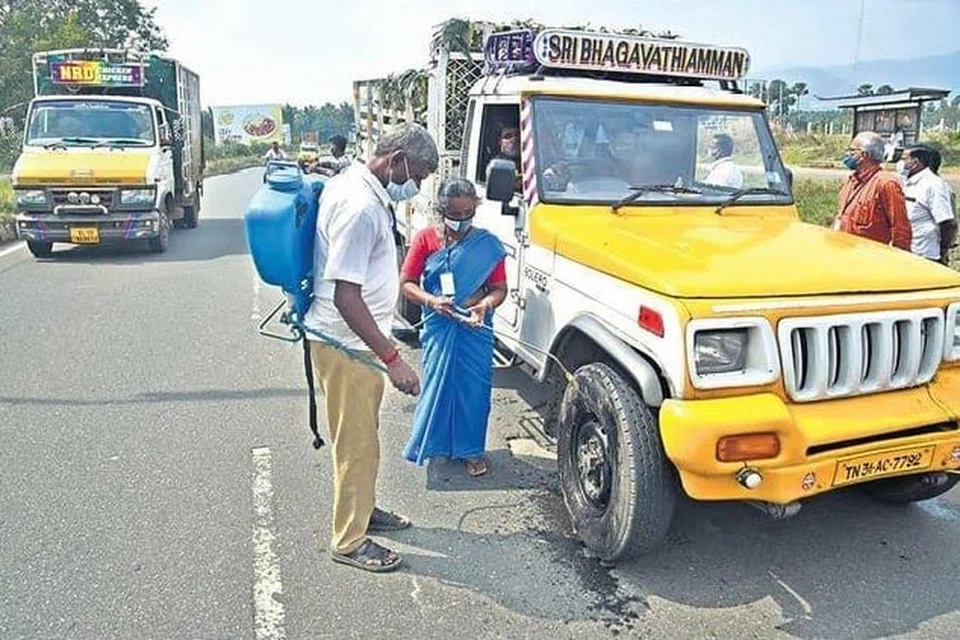 கேரள லாரிகளில் என்னென்ன பொருள்கள் ஏற்றி வரப்படுகின்றன என்று அதிகாரிகள் குறித்துக்கொள்கின்றனர். சரக்கு, இதர வாகனங்களில் கிருமிநாசினி தெளிக்கப்படுவது கட்டாயமாகி உள்ளது.