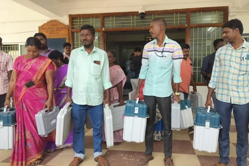 இதனைத் தொடர்ந்து வாக்குப்பதிவு மையம் வாரியாக மின்னணு வாக்குப்பதிவு இயந்திரங்கள், வாக்குப் பதிவு மையத்தில் பயன்படுத்தக்கூடிய பொருள்கள் உள்ளிட்டவை பலத்த காவல்துறை பாதுகாப்புடன் அனுப்பி வைக்கப்பட்டன.