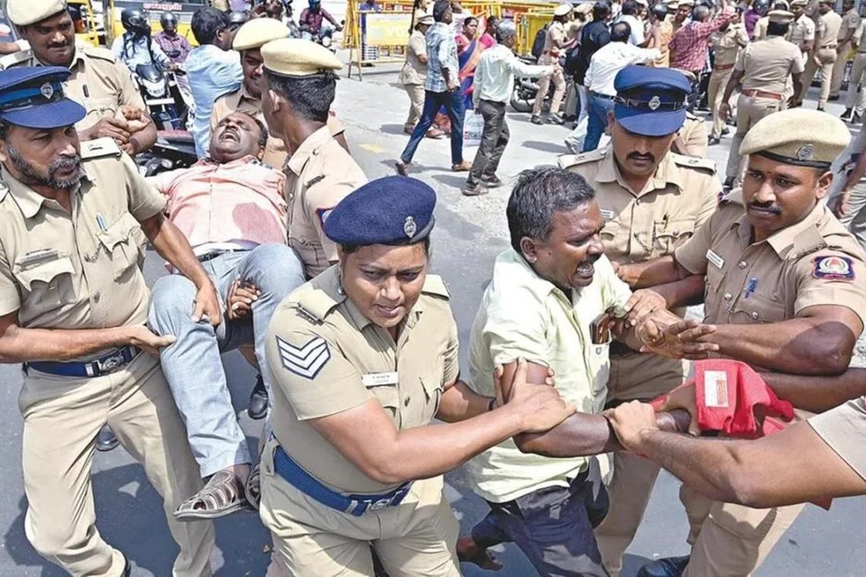 தமிழ்நாடு தொடக்கக் கல்வி ஆசிரியர் இயக்கங்களின் கூட்டு நடவடிக்கை குழு சார்பாக சென்னை டி.பி.ஐ.யில் உள்ள பள்ளி கல்வி அலுவலகத்தை முற்றுகையிட முயற்சி செய்து கடந்த இரு நாள்களாக போராட்டம் நடத்தினர். இதில் பலர் கைது செய்யப்பட்டனர்.