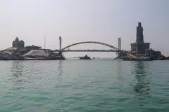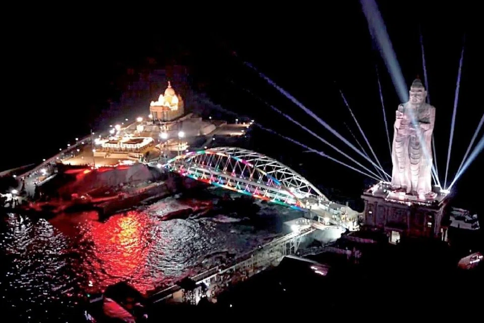 அத்துடன், திருவள்ளுவர் சிலைக்கும் விவேகானந்தர் பாறைக்கும் இடையே ரூ.37 கோடி செலவில் 77 மீட்டர் நீளம், 10 மீட்டர் அகலத்துக்கு அமைக்கப்பட்டுள்ள கண்ணாடி இழைப் பாலத்தையும் திறந்து வைத்தார்.