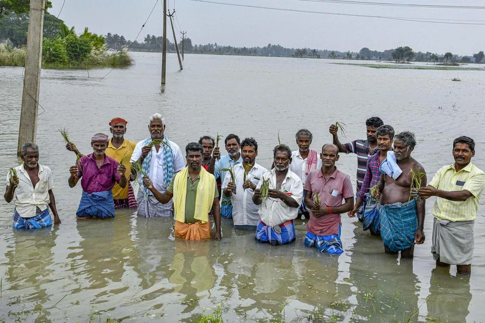 தஞ்சை: தமிழகத்தின் பல்வேறு மாவட்டங்களில் டிசம்பர் 14ஆம் தேதி இரவு வரை கொட்டித் தீர்த்த கனமழை காரணமாக, பல்லாயிரம் ஏக்கர் பரப்பளவிலான நெற்பயிர்கள் நீரில் மூழ்கின.