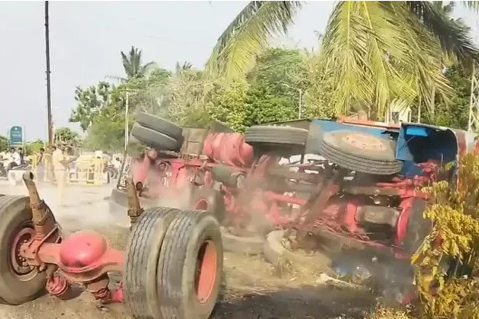 புதுச்சேரி: ஆபத்தான அமிலம் நிறைந்த லாரி கவிழ்ந்ததில் இருவர் உயிரிழந்தனர்.