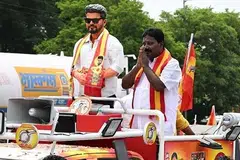 முன்னதாக, மதுரையில் இருந்து காரைக்குடி சென்றபோது விஜய்யின் பிரசார வாகனத்தைப் பின்தொடர்ந்து வந்த இருசக்கர வாகனம் ஒன்று விபத்தில் சிக்கியது.