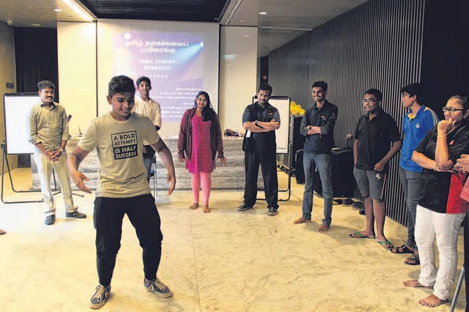 நகைச்சுவைப் பயிலரங்கில் ஆர்வத்துடன் பங்கேற்றவர்களில் சிலர். படம்: இந்திய மரபுடைமை நிலையம்