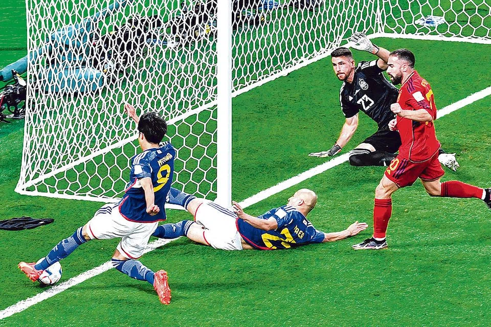 எனவே, அந்த கோல் செல்லுபடியாகும் என்று தொடக்கத்தில் நடுவர் ஒப்புதல் அளிக்கவில்லை. பந்து எல்லைக்கோட்டைத் தாண்டியதா என்பதை அதிகாரிகள் சரிபார்த்தனர். 'விஏஆர்' திரையில் அந்தக் காட்சிகளைத் தீவிரமாக ஆராய்ந்த பிறகே ஜப்பானுக்குச் சாதகமாக அதிகாரிகள் பச்சைக் கொடி காட்டினர்.