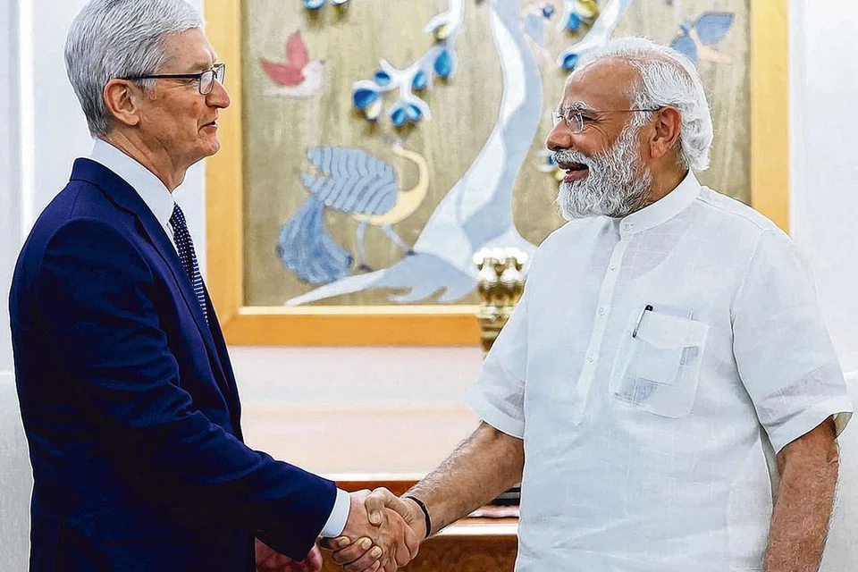 'ஆப்பிள்' நிறுவனம், இந்தியாவில் அதன் முதலிரு கடைகளைத் திறந்துவைக்க இந்த வாரம் இந்தியா சென்றுள்ள அதன் தலைமை நிர்வாகி டிம் குக், தலைநகர் புதுடெல்லியில் பிரதமர் நரேந்திர மோடியை நேற்று முன்தினம் சந்தித்தார்.