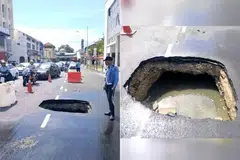 பேங்காக்: தாய்லாந்து தலைநகர் பேங்காக்கில் உள்ள ஒரு சாலையில் புதன்கிழமை (செப்டம்பர் 24) காலை திடீரென புதைகுழி ஏற்பட்டது. இதனால் அருகிலுள்ள உள்கட்டமைப்பு வசதிகள் சேதமடைந்ததால் பயணிகளுக்கு ஆபத்து ஏற்பட்டது.