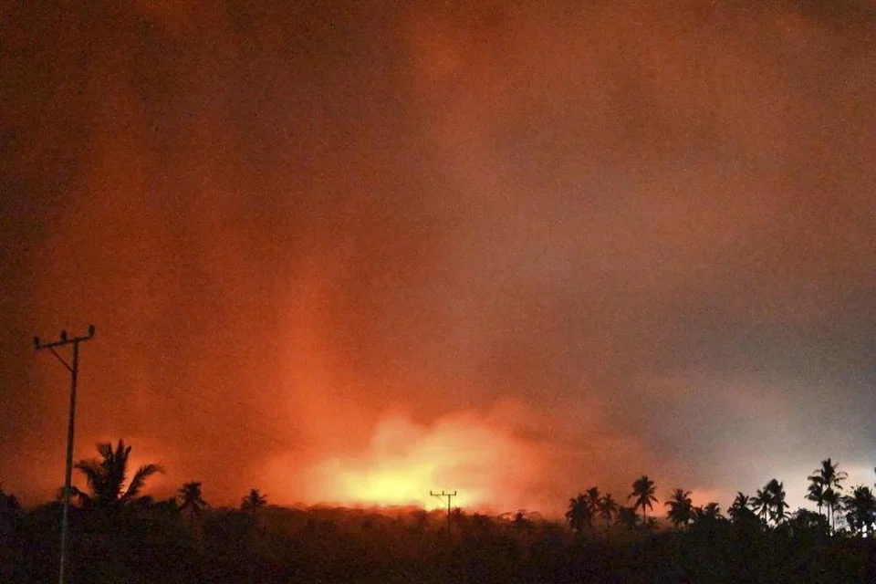 உள்ளூர் நேரப்படி ஞாயிற்றுக்கிழமை இரவு 11.57 மணிக்கு எரிமலை சீற்றமடைந்ததைத் தொடர்ந்து சிவப்பு நிற தீக்குழம்பு வெளியேறியது. அந்த வெடிப்பில் சாம்பலும் பாறைத் துகள்களும் பறந்து விழுந்தன.
