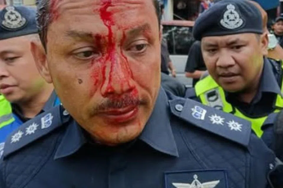 அப்போது, டாங் வாங்கி மாவட்டக் காவல்துறை உதவி ஆணையர் சுலிஸ்மீ அஃபென்டி சுலைமான் என்பவர் மீது அடையாளம் தெரியாத பொருள் ஒன்று வீசப்பட்டதில் அவரது தலையில் காயம் ஏற்பட்டது. ரத்தம் சொட்டச் சொட்ட அவர் காணப்படும் புகைப்படங்கள் சமூக ஊடகங்களில் வெளியாயின.