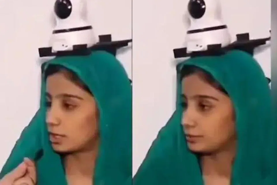 பாகிஸ்தானின் கராச்சியைச் சேர்ந்த அந்த தந்தை, தம் மகளின் பாதுகாப்பை உறுதிசெய்வதற்காக அந்த மகளின் தலை மீது கண்காணிப்பு கேமரா ஒன்றைப் பொருத்தியுள்ளார்.