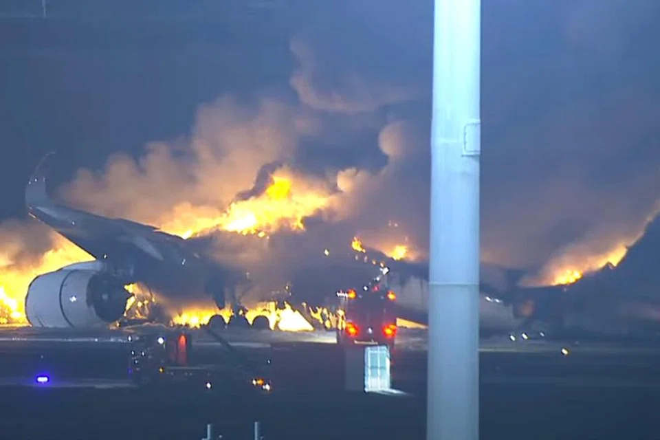 தீப்பிடித்த விமானம் ஓடுபாதையில் சறுக்கிச் சென்றதையும் தீயை அணைக்க தீயணைப்பாளர்கள் கடுமையாகப் போராடியதையும் என்எச்கே நேரலையாக ஒளிபரப்பிய காணொளி காட்டியது.
