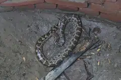 கார் கண்ணாடியில் சிறிது நேரம் ஊர்ந்த அந்த மலைப்பாம்பு, பின்னர் காரின் கூரைப்பகுதிக்குச் சென்றது.