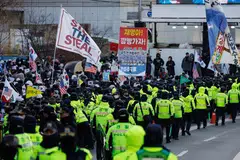 அரசியல் குற்றம் சாட்டப்பட்டு இடைநீக்கம் செய்யப்பட்டுள்ள அதிபர் யூன் சுக் இயோலைக் கைது செய்வதற்கு ஆதரவு தெரிவித்தும் எதிர்ப்பு தெரிவித்தும் இருவேறு பேரணிகள் அவரது அதிகாரபூர்வ இல்லத்துக்கு அருகே நடைபெற்றன.