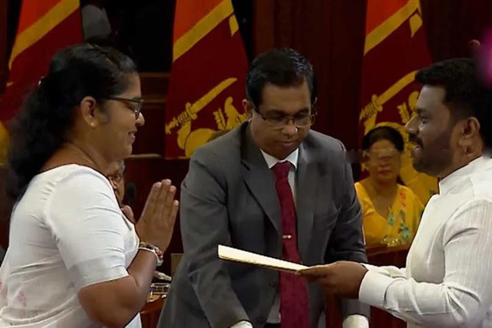 இலங்கையின் 225 உறுப்பினர்களைக் கொண்ட நாடாளுமன்றத்திற்கு வியாழக்கிழமை (நவம்பர் 14) நடைபெற்ற பொதுத் தேர்தலில் அனுரகுமார திசாநாயக்கவின் இடதுசாரிக் கூட்டணி 159 இடங்களைப் கைப்பற்றியதை அடுத்து, தேசிய மக்கள் சக்தியின் புதிய அரசாங்க அமைச்சரவை திங்கட்கிழமை காலை அதிபர் செயலகத்தில் பதவியேற்றது.