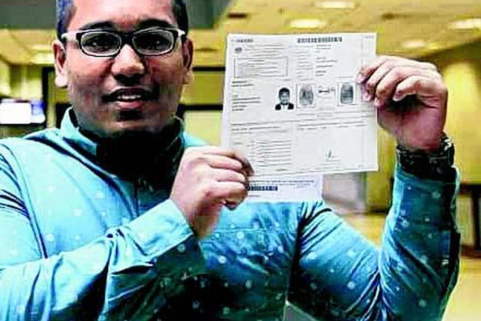 ஏப்ரலில் தற்காலிக அடையாள அட்டையைப் பெற்ற நவின் மூர்த்தி. படம்: இணையம்