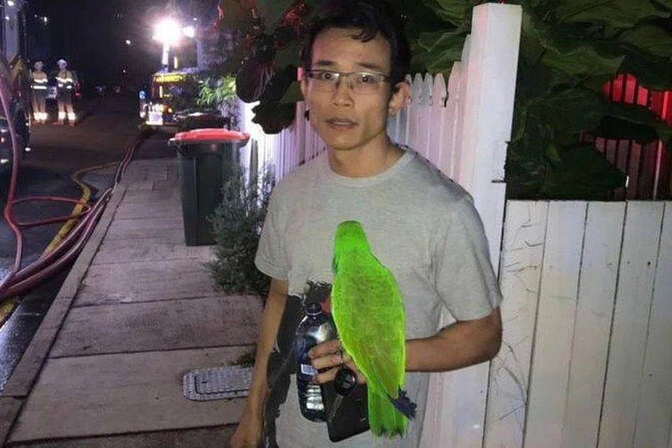 இரவில் தீப்பற்றிக்கொண்ட தமது வீட்டிலிருந்து தாம் உடனடியாக வெளியேற செல்லப்பிராணியாக வளர்க்கும் பச்சை கிளி தம்மைத் தூக்கத்திலிருந்து எழுப்பிவிட்டதாக ஆஸ்திரேலியரான அன்டோன் நுயன் என்பவர் கூறியுள்ளார்.