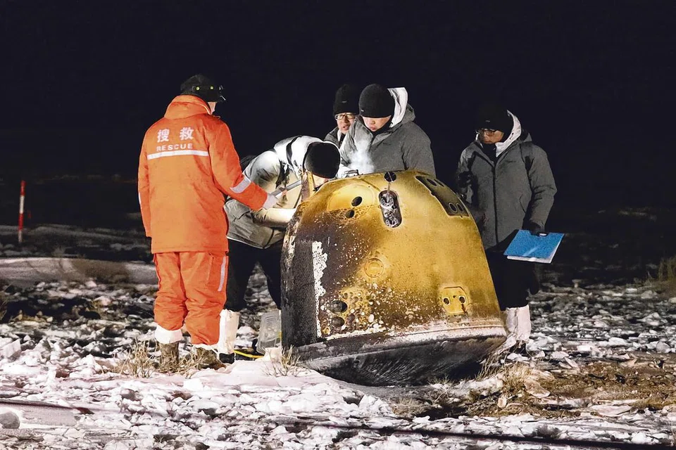 சீனாவின் தன்னாட்சிப் பகுதியான 'இன்னர் மங்கோலியா' பகுதியில் நேற்று அதிகாலை தரையிறங்கியது. நிலவை ஆய்வு செய்வதற்காக கடந்த மாதம் 24ஆம் தேதி சாங்கே-5 விண்கலத்தை சீனா ஏவியது. அந்த விண்கலம் இம்மாதத் தொடக்கத்தில் நிலவில் வெற்றிகரமாகத் தரையிறங்கியது.