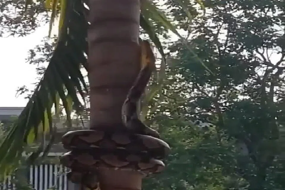 மலைப்பாம்பு ஒன்று மரமேறும் காணொளி இணையத்தில் பரவி வருகிறது.