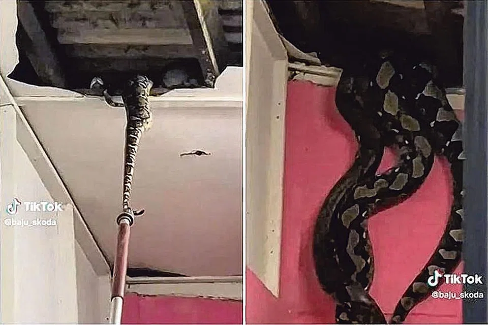 பெந்தோங்: மலேசியாவின் பாகாங் மாநிலம், பெந்தோங்கில் உள்ள ஒரு வீட்டின் மேற்கூரையிலிருந்து கடந்த ஞாயிற்றுக்கிழமை இரு பெரிய மலைப்பாம்புகள் (படம்) வெளியேற்றப்பட்டன.