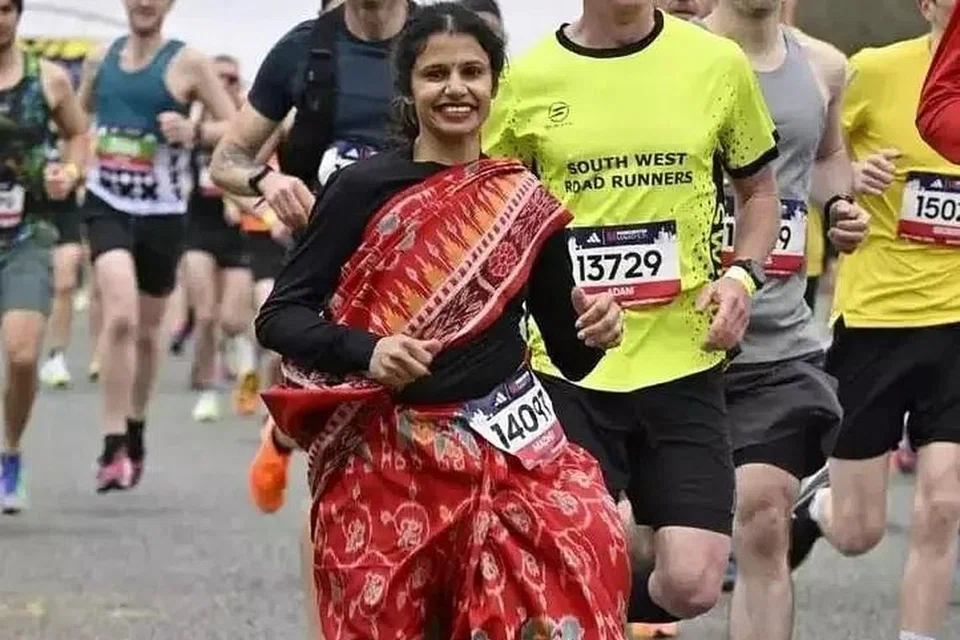 மான்செஸ்டர்: பிரிட்டனின் மான்செஸ்டர் நகரில் இந்திய வம்சாவளிப் பெண் ஒருவர் சேலையில் நெட்டோட்டத்தில் பங்கேற்றுள்ளார்.