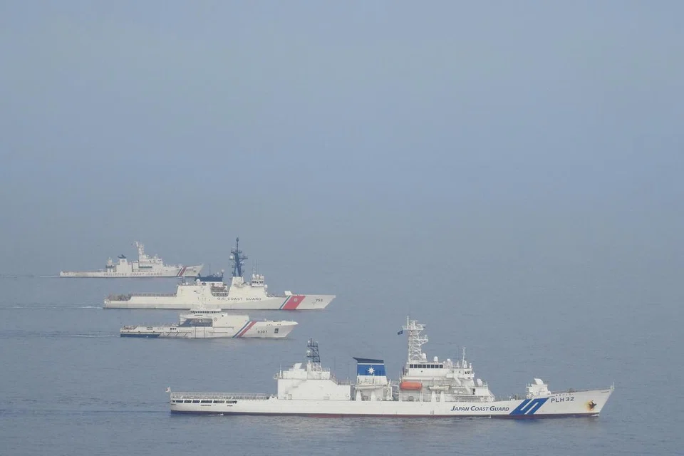 தென்சீனக் கடல் பகுதியில் பிலிப்பீன்ஸ், அமெரிக்க, ஜப்பானிய கடலோரத் தற்காப்புக் காவல்படை பங்காளிகளது கப்பல்கள் கடந்த ஜூன் மாதம் முத்தரப்பு கடல் பயிற்சியை மேற்கொண்டன. - படம்: பிலிப்பீன்ஸ் கரையோரக் காவல்படை
