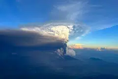 சென்ற மாதமும் இந்த எரிமலை வெடித்ததை அடுத்து மலையைச் சுற்றித் தடுப்புச் சுவர்கள் அமைக்கப்பட்டிருந்தன. சீறிவந்த எரிமலைக் குழம்பை அந்தத் தடுப்புகளால் முழுமையாகத் தடுத்து நிறுத்த இயலவில்லை.